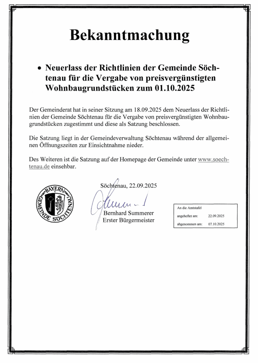 Richtlinien – für die Vergabe von preisvergünstigten Wohnbaugrundstücken